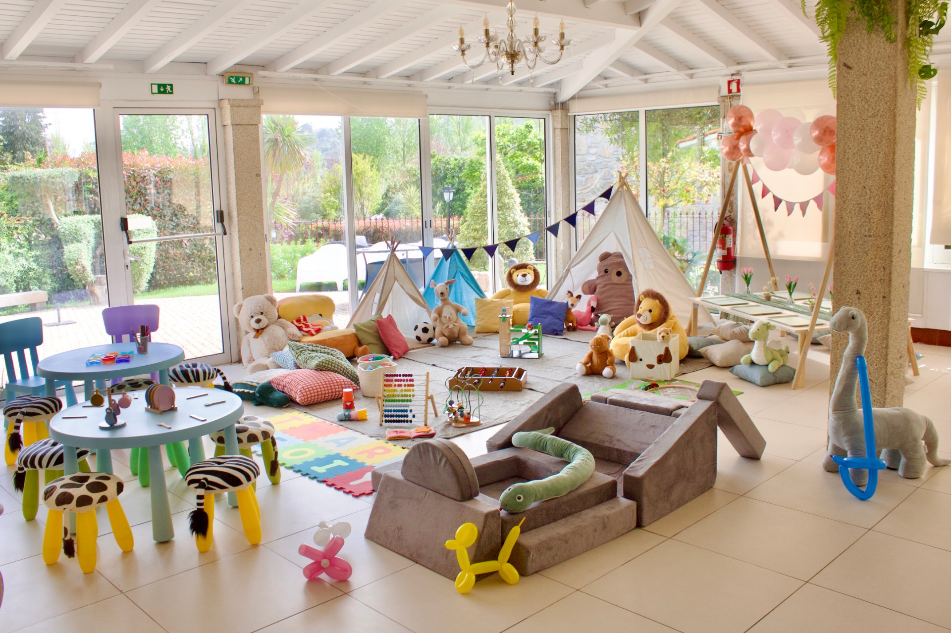 Oferecemos serviços de animação infantil, babysitting, sala de apoio a bebés, petsitting (para os animais) e caresitting (para idosos, pessoas com mobilidade reduzida ou necessidades especiais).